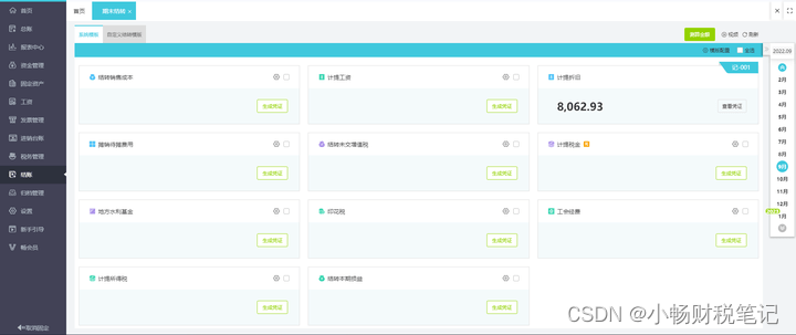 9、国税/个税一键申报,凭证自动生成税表;自动监控企业税负风险,通过税负测算、税务风险预警等功能实现财税互联