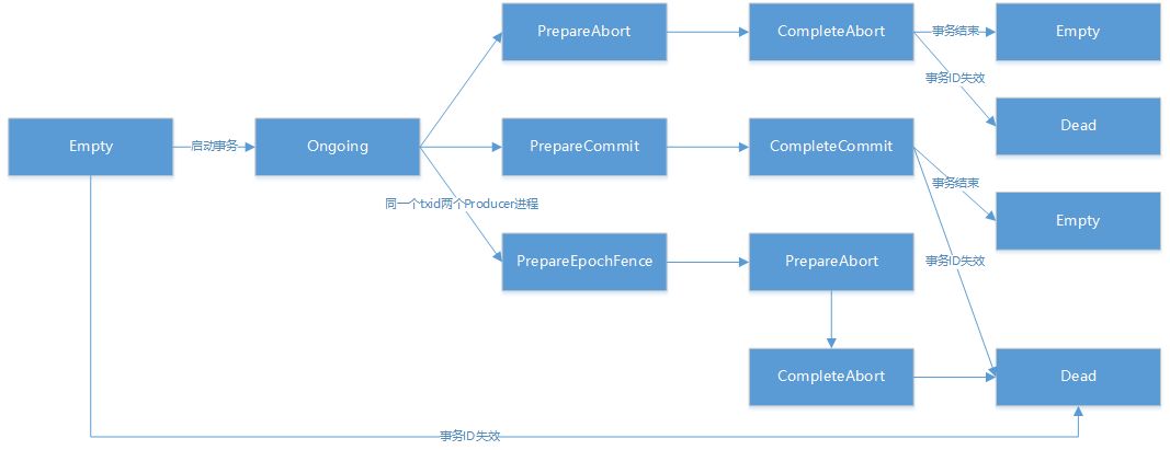 | Dead | 6 | TransactiontalId已经失效,默认15天 |
