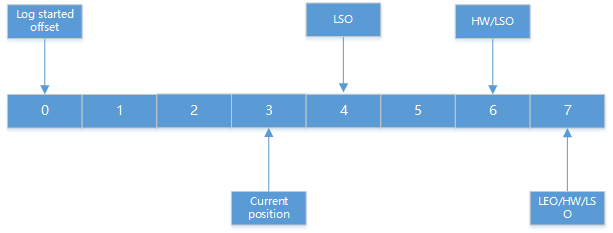 LSO小于等于HW/LEO,LSO可见的位置肯定是事务已经结束了(已经Commit或者Abort)。LSO指向4时,说明5、6、7的数据相关的事务还没有Commit或者Abort。