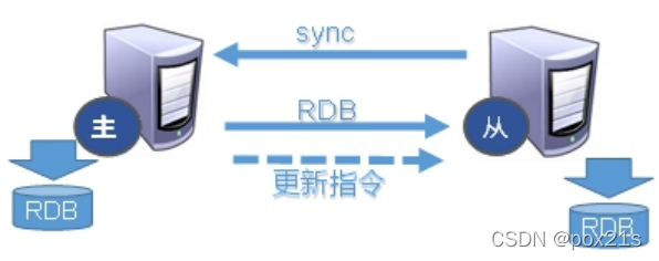 - Master 接到命令启动后台的存盘进程,同时收集所有接收到的用于修改数据集命令,在后台进程执行完毕之后, master 将传送整个数据文件到 slave,以完成一次完全同步