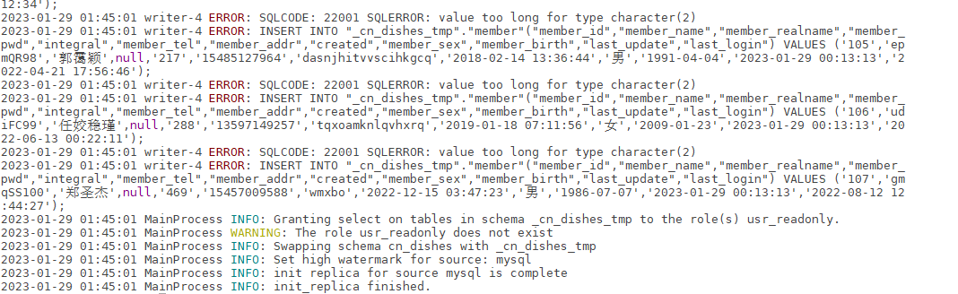 mysql通过chameleon迁移到opengauss3.1时,迁移指令没有报错,但高斯数据库端就是没数据,只有chameleon中间维护的表,最终定位chameleon的日志中如下显示,卡了我两天才解决,应该也有不少人碰到,这里分享出来解决方法。