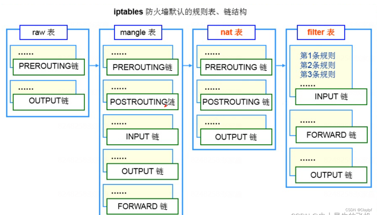1、规则链:规则堆放的一个位置 --》如ip、端口号、 协议等