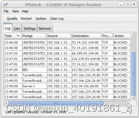 防火牆的視察軟體介面範例,紀錄IP進出的情況與對應事件