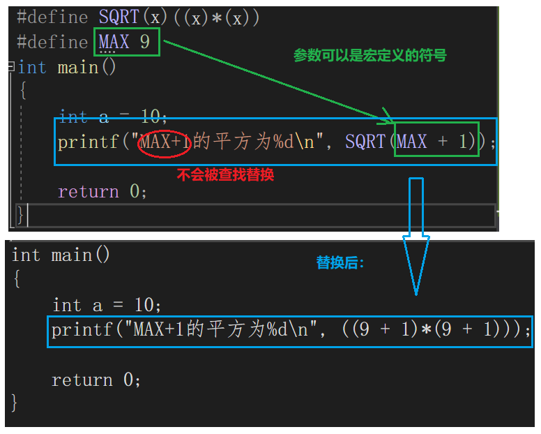 1. 宏参数和#define 定义中可以出现其他#define定义的符号。但是对于宏,不能出现递归。