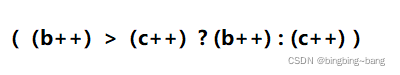 实际计算时b和c的值都会发生变化,首先b和c都是1,在计算完((b++)>(c++))后,b变为2,c变为2,然后执行(c++),c变为3,最后结果为3