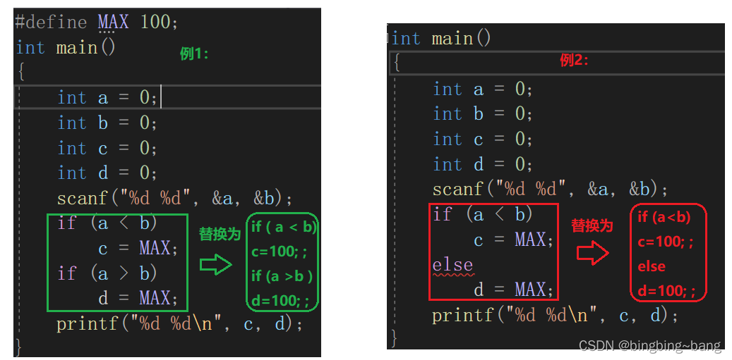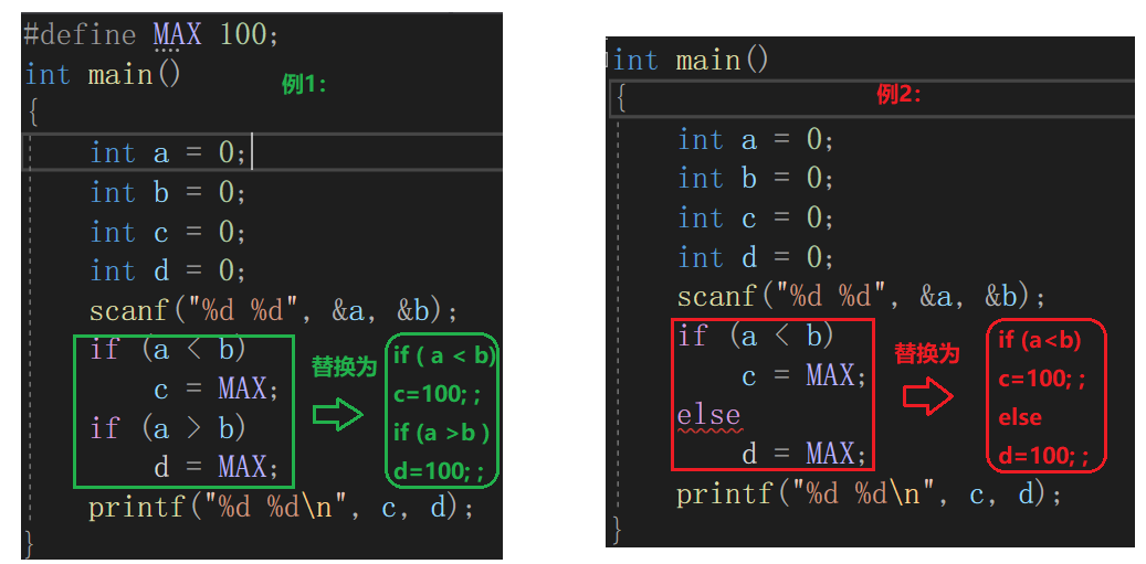 2. 替换文本随后被插入到程序中原来文本的位置。对于宏,参数名被他们的值所替换。