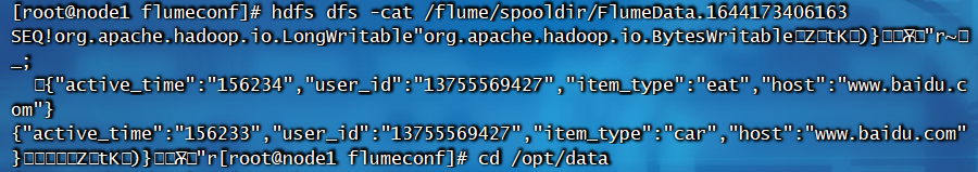 hdfs dfs -cat /flume/spooldir/FlumeData.1644173406163