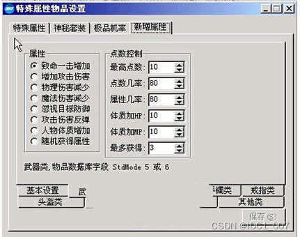 3.物品出极品的几率首先设置图1中的基本极品几率,然后在按照不同类型装备设置对应的属性几率.