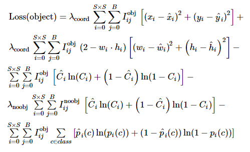 表示真实的中心点坐标及相应的宽高; Ci表示置信度, 表示真实值; pi(c)表示物体为类别c的概率。