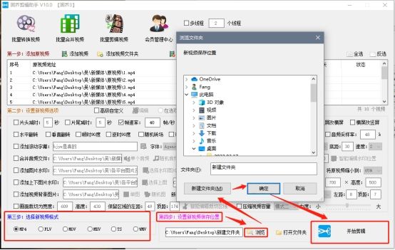 第三步选择视频的文件格式,如果正好在剪辑中的视频需要转换格式的话,就可以直接剪辑转换一起操作了,节省了独自转换视频的时间,这个设计非常贴心,最后还可以设置视频的保存位置,点击“浏览”,就可以设置位置,还可以新建文件夹呢,这样方便我们查找视频。