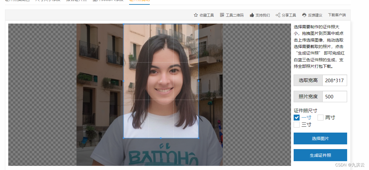 3、选一寸,然后点【生成证件照】按钮: