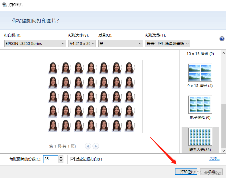 7、每张图片的份数写35: