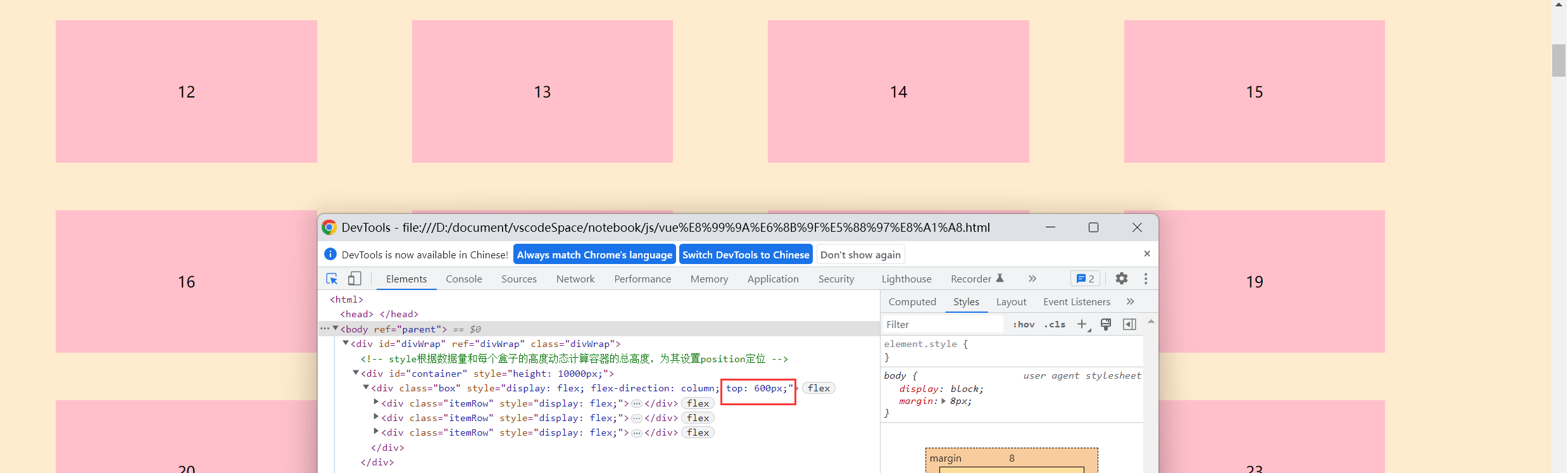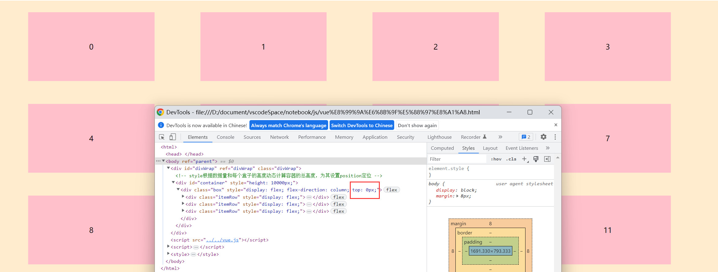 当从后端一次性取到成千条数据进行页面渲染,再对页面进行操作很可能导致页面崩溃,这时就可以用虚拟列表的方法,进行页面的渲染。