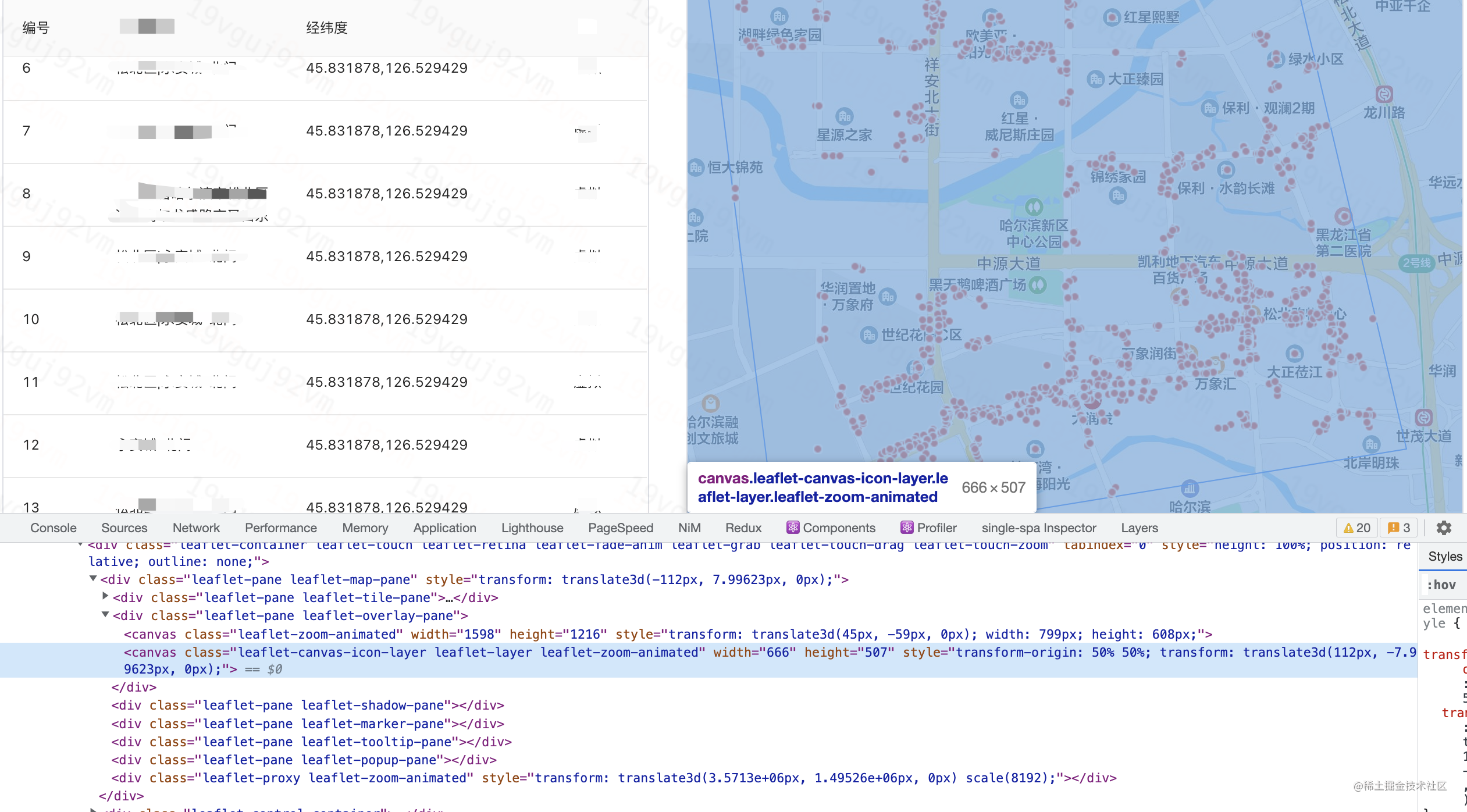 地图marker元素是以dom方式来渲染的,数据量少的情况下没有什么问题,但随着数据量增多,dom渲染的性能越来越吃力,导致页面卡顿甚至崩溃。鉴于地图使用的是leaflet,所以想到的解决方案是用canvas来绘制,至于为什么canvas相较于dom渲染性能得到提升,可以参考这篇文章HTML界的“苏炳添”——详解Canvas优越性能和实际应用]。