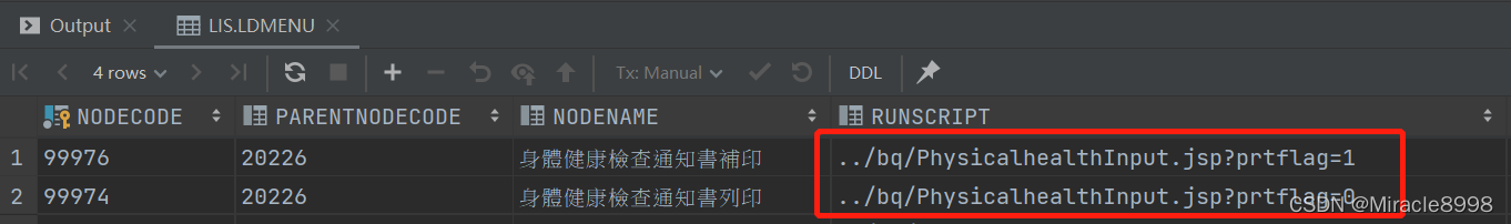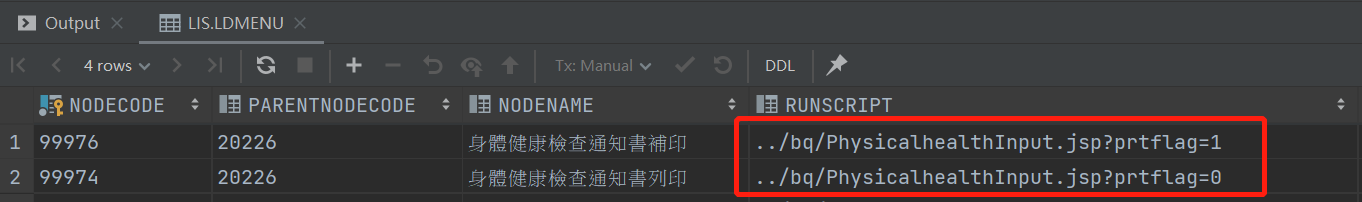 第一步:在进行数据库菜单配置时,给两个画面的地址后拼接参数prtflag,其值为0或1.