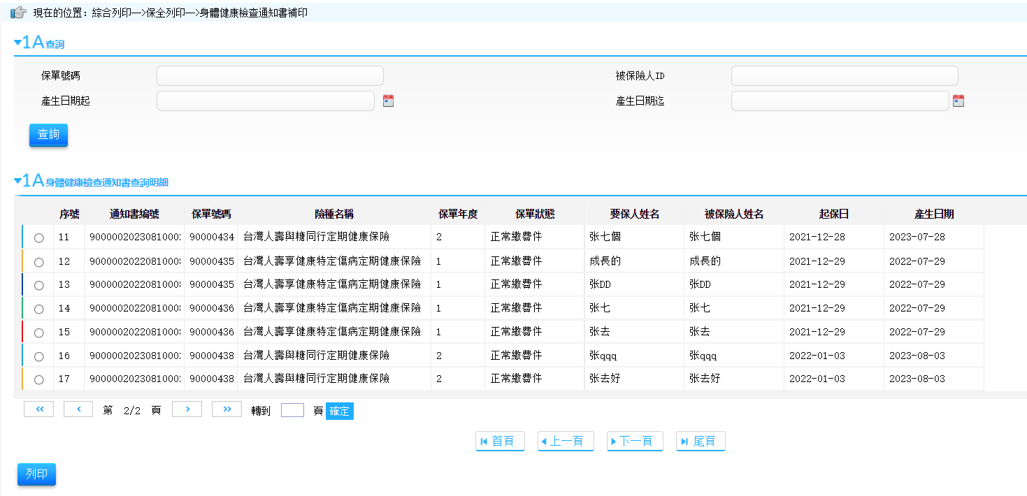 function queryPhysicalhealthGrid(){var date = document.getElementById('startDate').value;var date1= document.getElementById('enddate').value;if((date == "" && date1 != "" ) ||(date != "" && date1 == "")){alert("日期輸入不完整,請重新輸入。")return;}if(date > date1){alert("日期區間起期大於迄期,請重新輸入。");return;}var tcodeno = fm.contno.value;var tinsureid = fm.insureid.value;var tstartDate = fm.startDate.value;var tenddate = fm.enddate.value;var mySql=new SqlClass();mySql.setModule("ind_print_pa"); mySql.setResourceName("bq.PhysicalHealthSql"); mySql.setSqlId("PhysicalHealthSql1");mySql.addPara(tcodeno);mySql.addPara(tinsureid);mySql.addPara(tstartDate);mySql.addPara(tenddate);//此处将打印标志作为参数传入mySql.addPara($("#prtflag").val()); turnPageGrid.queryModal(mySql.getString(),PhysicalhealthGrid);