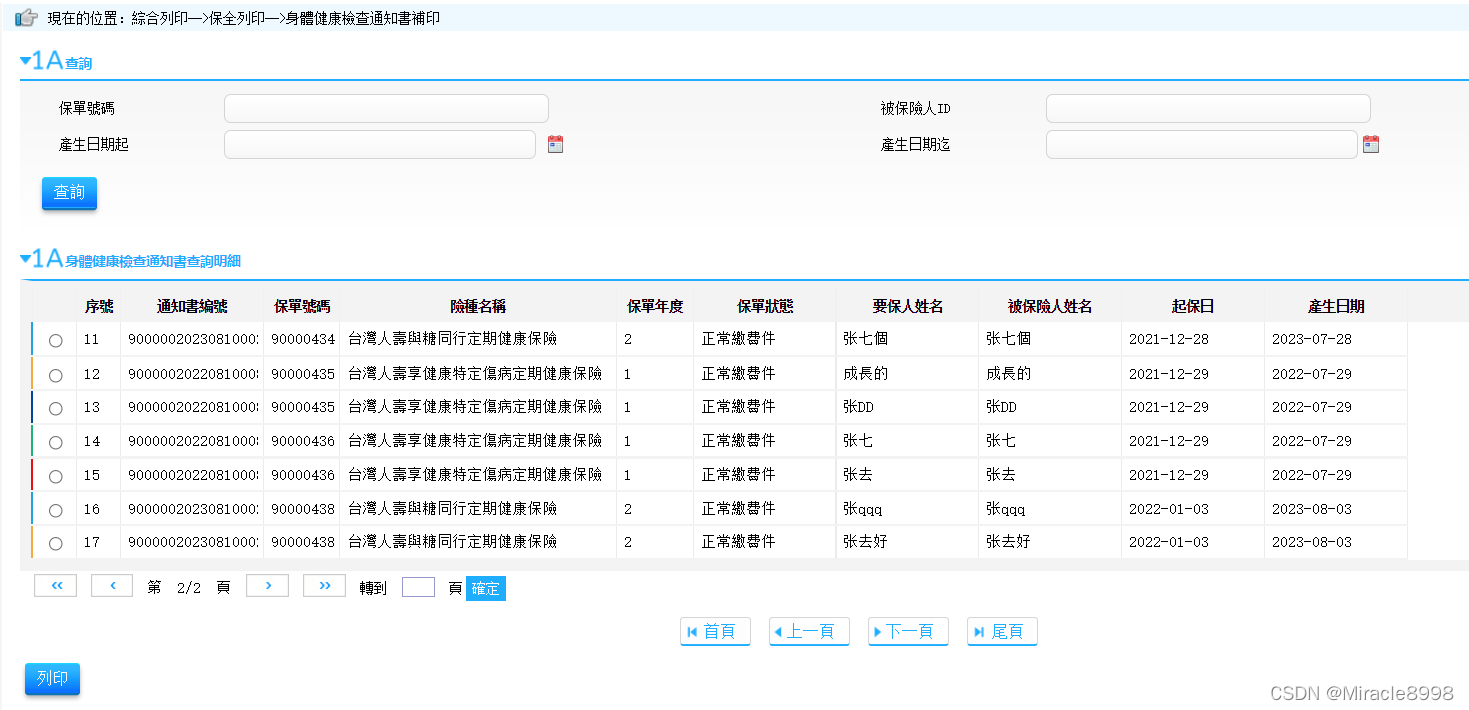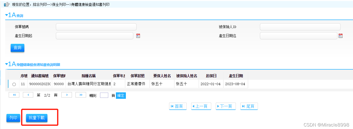 由以上画面可以看到,通知书列印和通知书补印的区别是一个画面有批量下载按钮,而另一个无此按钮,这时如果不想写两个相同的画面增加劳动力,则可以通过以下方式来实现一个页面实现两个页面的效果。