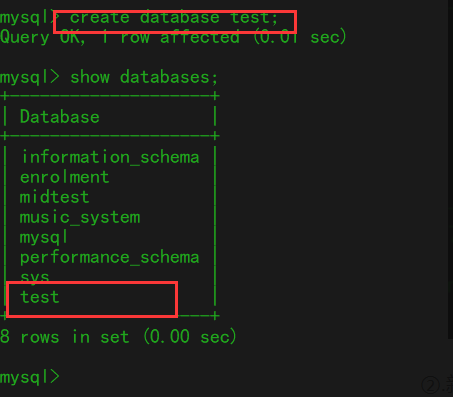 ②.新建数据库(eg:创建一个名为test的数据库)