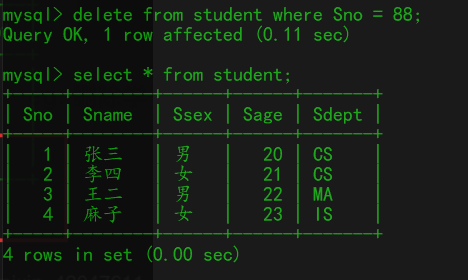 eg: 删除学号为88的学生