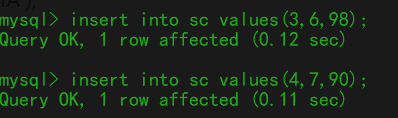 4、向sc表插入以下数据: