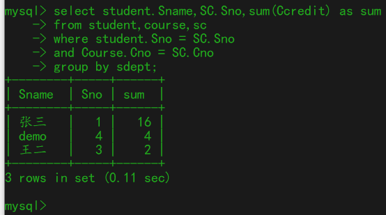 5、查询每个系所获得的学分总和。