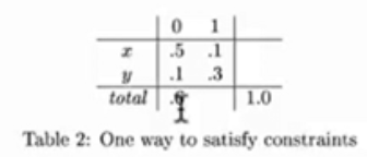 这样就能将上面的这些算法写成一个表格中,(X,0)出现4次就是0.4,(X,1)出现2次是0.2。
