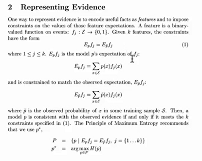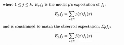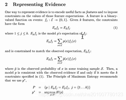 就是特征函数为1的几个特征期望要和样本相同,其他的按照能使熵最大的分布计算。
