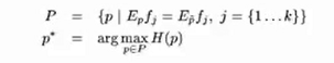上面的解就不仅能满足约束条件,同时使得模型的熵最大。