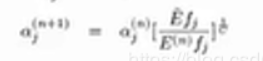 样本概率分布在约束fj下计算得到的期望,开C次方,也就是说第n次计算出来的结果比真实的样本分布概率大的话就缩小αj,从而使得预测概率减小,第n次计算出来的结果比真实的样本分布概率大小的话就增大αj,从而使得预测概率增大,从而接近真实样本。