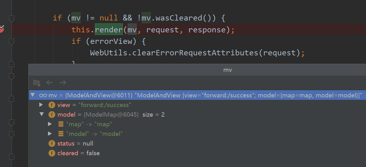 调用resolveViewName,将 mv.getModelInternal()获得的参数值传入
