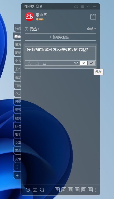 4、除了这个方法之外,也可以直接双击笔记内容,在编辑窗口中进行笔记内容的修改,编辑完成后,点击编辑框右下角的对勾样式【保存】按钮,即可成功修改笔记内容。
