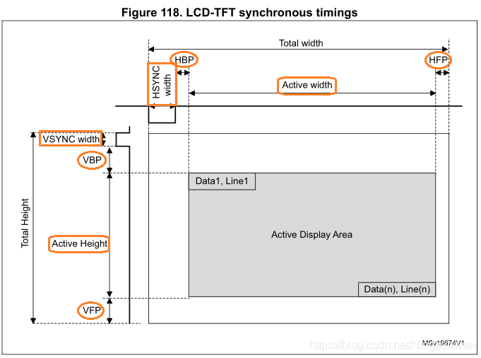- VBP:垂直后廊,表示垂直同步信号后,无效行的个数,取值8