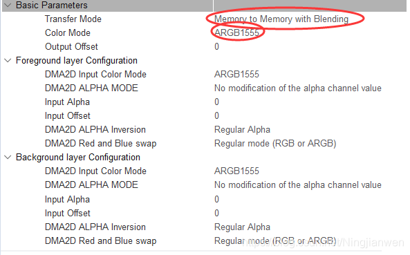 DMA2D的Parameter Setting配置如下所示: