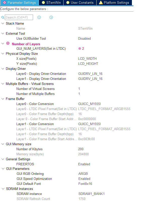 配置好LTDC后StemWin才是可选择的: