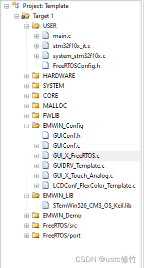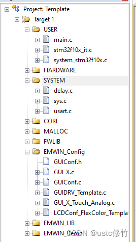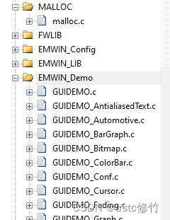 由于本移植过程是在 STemWin不带操作系统的基础上进行的,所以我们先介绍一下子已有的文件,并且补充哪些需要修改及添加进来。
