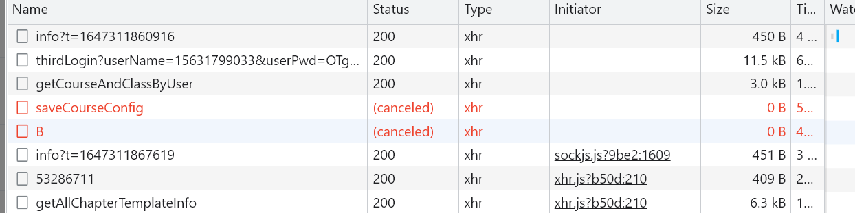 在维护一个同事开发的项目的时候发现一个问题,每次发送对应功能点的请求都会有个别请求的status的请求状态为canceld。