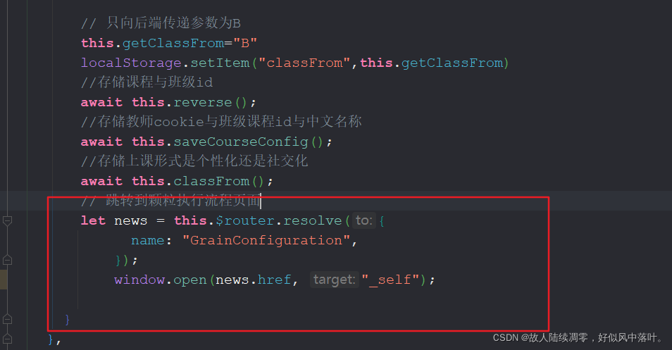 然后看了一下同事跳转路由的方式,发现她是用的window.open()方法来进行路由跳转