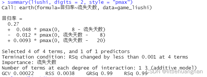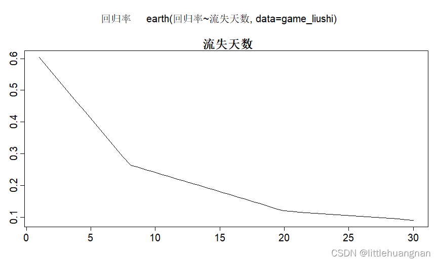 library(earth)liushi <- earth(`回归率`~`流失天数`,data=game_liushi)