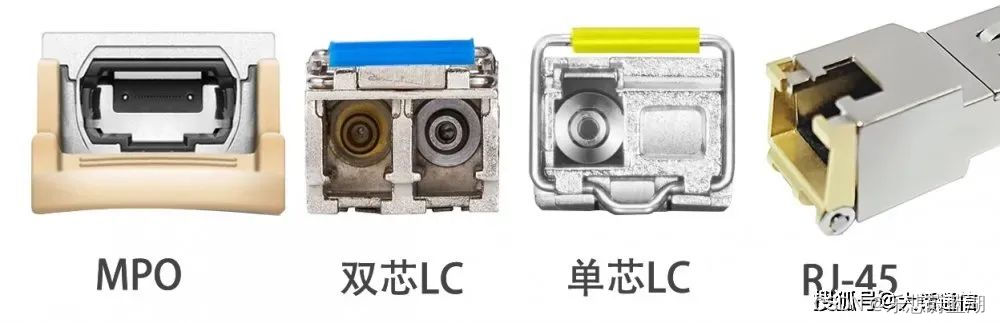 光模块接口类型主要有MPO/MTP、双芯LC、单芯LC和RJ-45接口。
