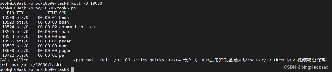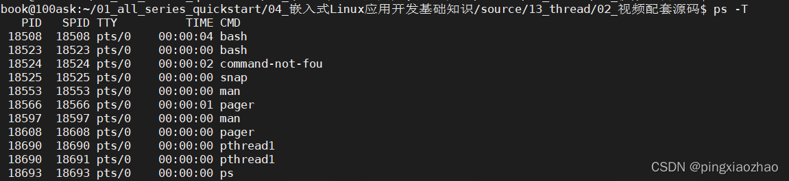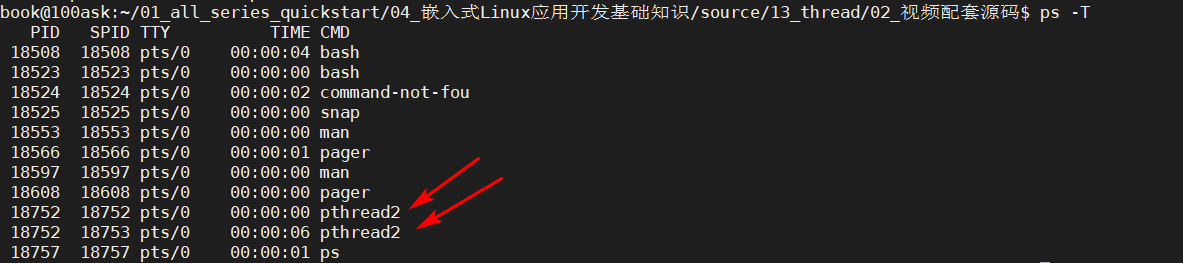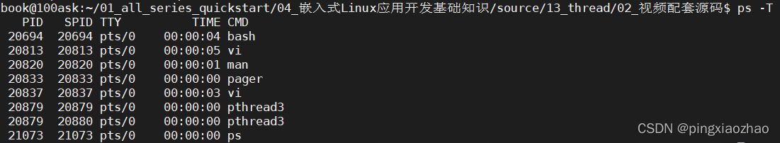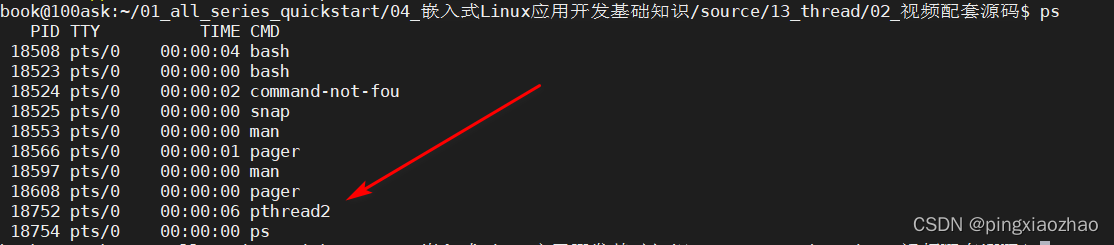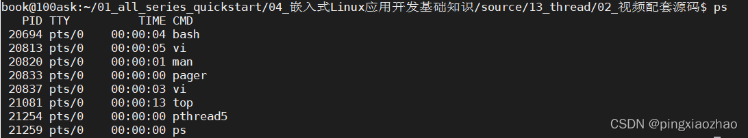2.4运行代码:./pthread2 注意:程序中使用了fget函数,所以不能使用后台执行./pthread2 &