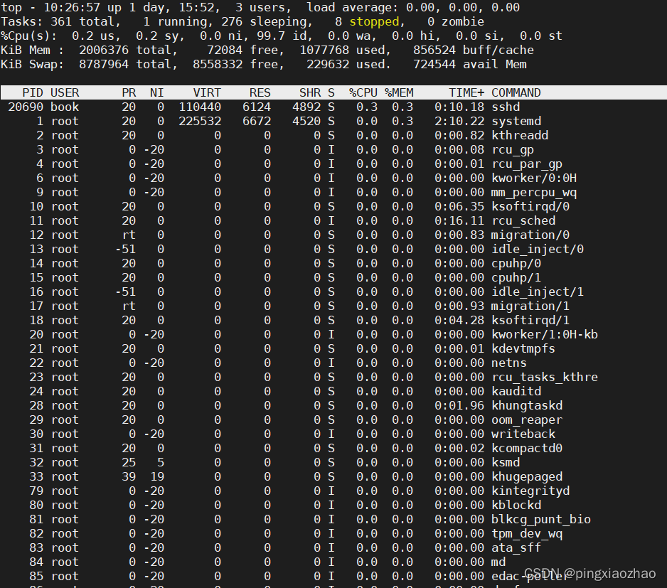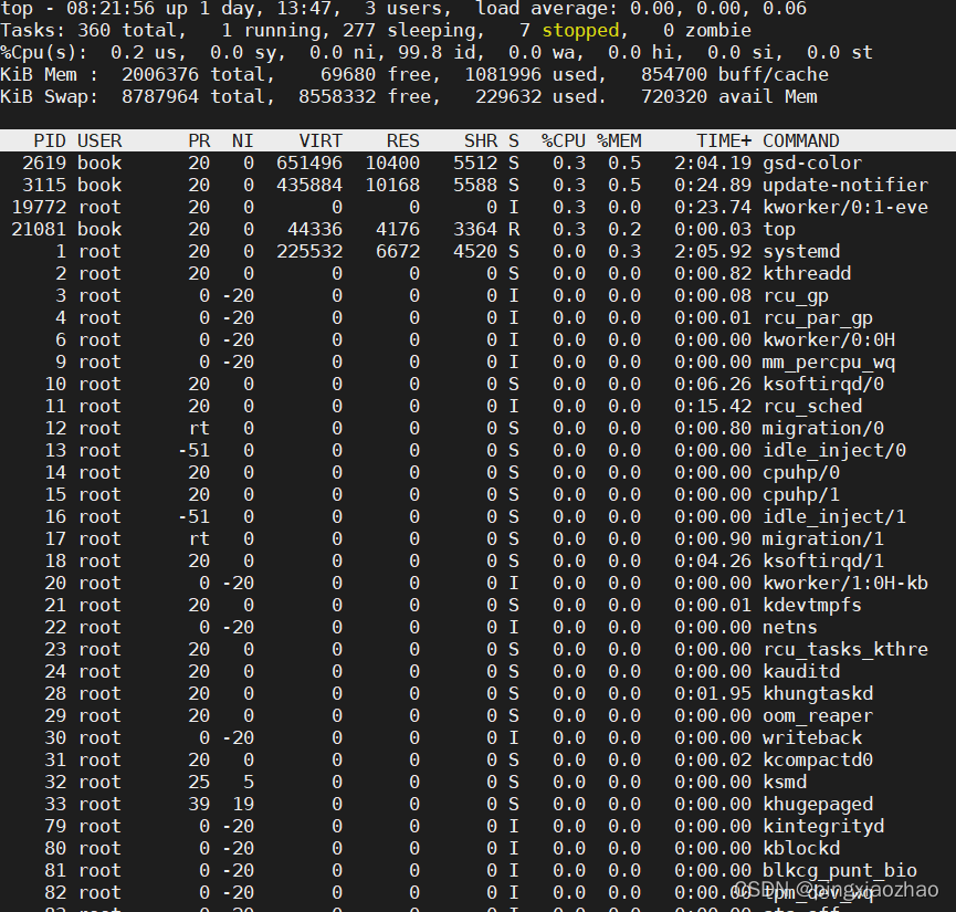 2.7 用另一个终端执行命令:top , 发现如此简单的程序尽然消耗CPU资源如此之高