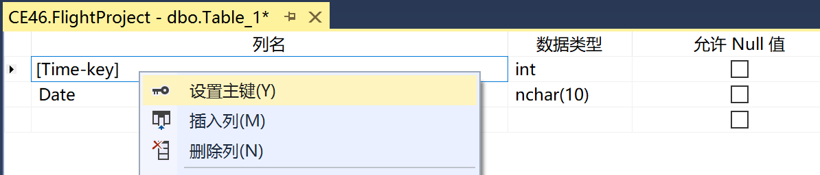 6、以时间维表为例,创建了Time-key和Date两列之后,右键Time-key,设置为主键;