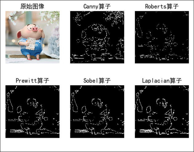 plt.subplot(236), plt.imshow(Laplacian, cmap=plt.cm.gray), plt.title('Laplacian算子'), plt.axis('off')plt.show()