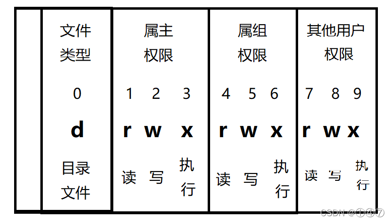 一般权限第2~10个字符当中的每3个为一组,左边三个字符表示所有者权限,中间3个字符表示与所有者同一组的用户的权限,右边3个字符是其他用户的权限,这三个一组共9个字符。