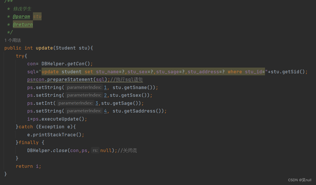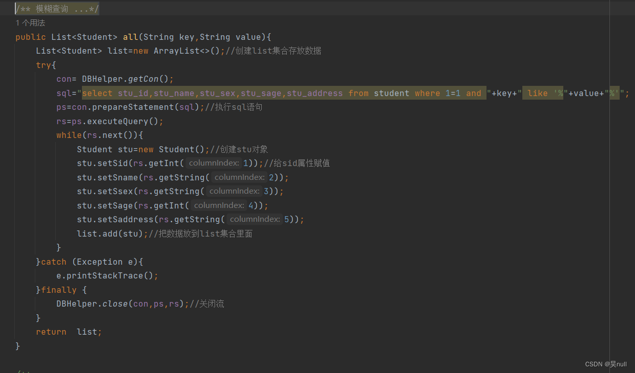 (2),学生方法类(StuDao)--dao写增删改查四种方法