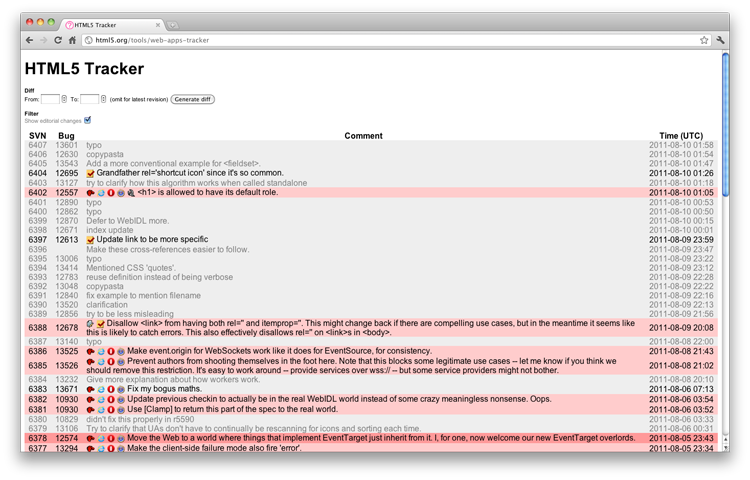 想了解 HTML5的最新动向吗? 使用 HTML5 Tracker 吧,它可以跟踪 HTML5 最新修订信息。