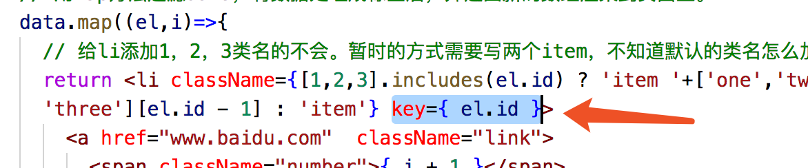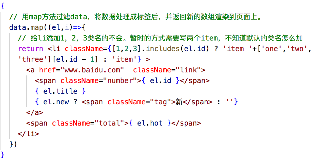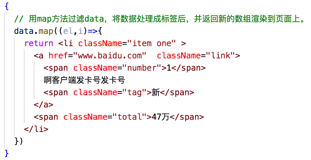 在js的花括号里,既要遍历数组,又要有返回值。所以用到数组的map方法