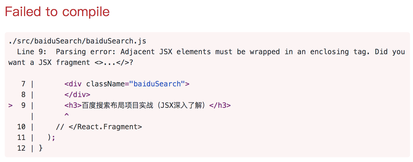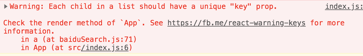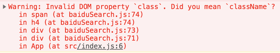 in h3 (at baiduSearch.js:41) in div (at baiduSearch.js:40) in App (at src/index.js:6)