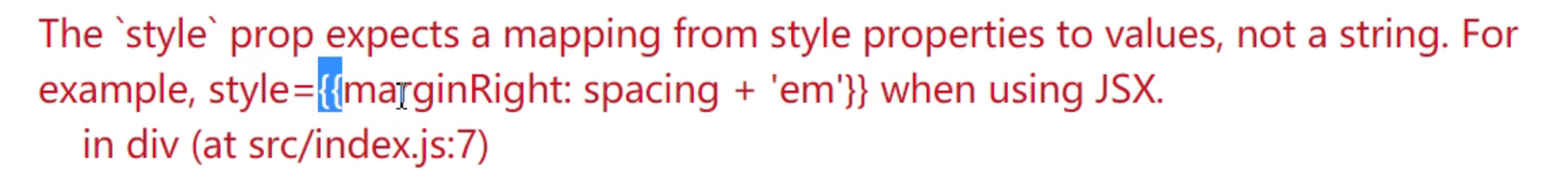 The `style` prop expects a mapping from style properties to values, not a string. For example, style={{marginRight: spacing + 'em'}} when using JSX.