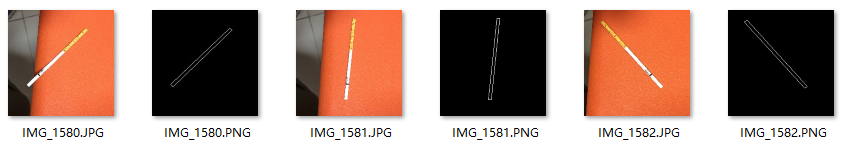 需求是边缘识别出试纸,所以需要的训练图片和标签图片如上所示。(这个标签图片是通过labelme进行标注,生成了json文件然后对json文件进行处理生成了mask图像)